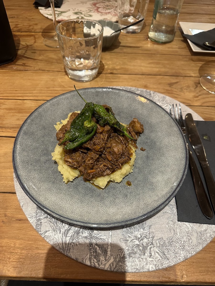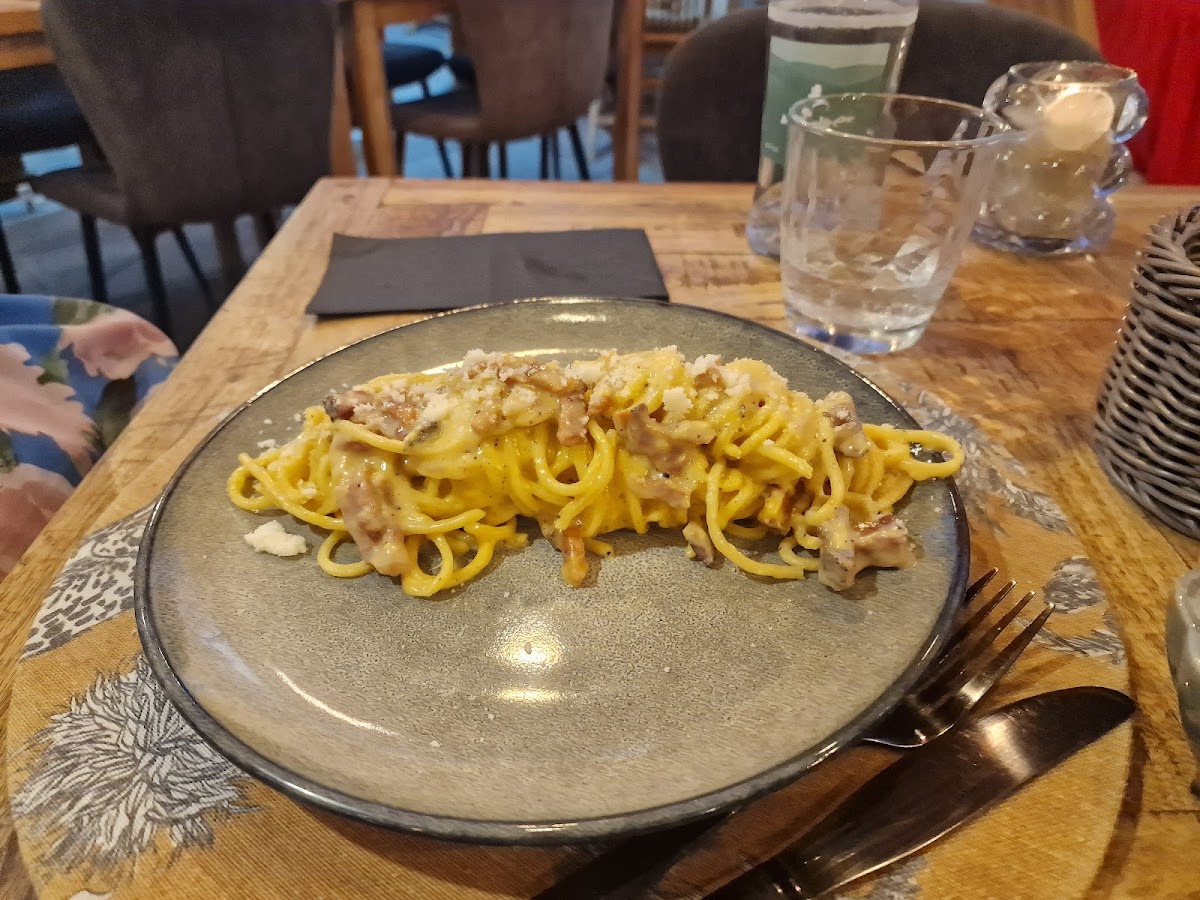 We went into the busy part of town looking for what we hoped would be a good tapas place to eat. We stumbled across this one after finding the recommended one was shut. In all honesty, I'm glad it was shut because I would never have been able to experience the food from margot bistrot y tapas, which was absolutely amazing. THE FOOD - unfortunately I failed to take a picture of the menu myself, so I can't explain the dishes in english, but basically we got 3 tapas to share, one was a crispy onion basket dish, it seemed to have a cheesy, creamy sauce with it which I absolutely loved. Another one was the cheese in panko breadcrumbs with honey, which was a nice dish. The final tapas dish was like a chicken burger (I'm unsure what the other ingredients were), which had a doughnut instead of a bun, savoury, of course. I couldn't give you a favourite as I loved the onion basket and the burger just as much. We then had a bread basket with aoli. The bread was homemade, as was the aoli, and they were delicious! The highlight of our meal was definitely the carbonara! We had one each, and I don't regret that for a minute! I knew instantly that what I was eating had to be authentic with guanciale, something which I had never tried but have always wanted to try. If you've never had it, I can tell you now it is leagues above pancetta. THE SERVICE - I cant fault to service at all, we arrived early and I went in to ask about a table, he told me they wouldn't be open for another 15 minutes, but pick a table and they can reserve it for us. They were brilliant throughout the meal and at the end I asked the lady about the ingredients in the carbonara. She told me the ingredients, then explained they were from Rome in Italy and that was the only way you should make a carbonara, something which I already knew but I just wanted to know that I was right in my guess. I asked for the bill and she brought us 2 shots on lemoncello which was a nice touch at the end of the meal. THE ATMOSPHERE - nice background music and after a while the place started to fill up with people. It was nice and relaxing throughout. Would I recommend this place? Without a doubt! If you enjoy authentic pasta and like to try dishes that maybe you wouldn't find elsewhere, tapas style, this is the place for you!