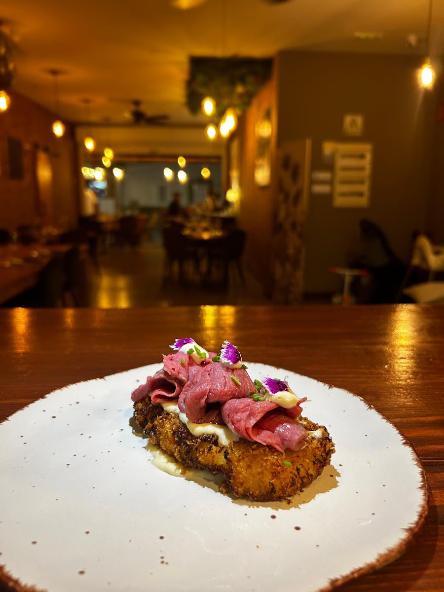 Margot is a small, family-run bistro with Roman roots that has managed, with remarkable ease, to weave its origins into the local gastronomy. Textures and flavors overflow; surprises dance across the palate. Everything happens at once, and nothing is unnecessary. Excellent tapas, a well-curated wine selection, and a menu that is varied yet concise—just enough to intrigue without overwhelming. Francesca, the host, has the rare gift of knowing exactly what to recommend just by looking you in the eyes. Fresh, local fish; thoughtful vegetarian dishes; well-executed meat plates. And then, the pastas—an absolute must, in my opinion. They brought Rome in their suitcase. Behind the stove is chef Giulia, whose background in Michelin-starred kitchens is quietly reflected in the precision of her technique and the thoughtful execution of each dish. Our journey went like this: A squidi julienne, fresh and light, cooked at low temperature—tender, juicy—paired with zucchini, mint, lemon gel, and pistachio. The dressing brings everyone to the same table. Parmesan spheres with honey, hazelnuts, and guanciale: crispy on the outside, creamy within, sweet enough to embrace the umami depth of the cheese. A nest of onion rings with cacio e pepe sauce—a classic combination that feels unexpectedly new in the mouth. Delicate onion textures, perfectly cooked; the cream takes you somewhere else entirely. A potato crocchetta with beef tenderloin tartare. The temperature contrast is subtle, harmonious. The meat is seasoned with restraint, allowing the raw product to speak with dignity. The carbonara was love at first sight. A dish to eat in silence, without pause. Generous golden guanciale, perfectly emulsified—undoubtedly the most classic and authentic version on the island. And the meatballs—the nonna’s dish we all long for. They’ve recreated it flawlessly. A gentle touch on the emotions. In the end, they made us feel a little bit of Rome and a little bit of Fuerteventura. A place that feels like the home of good friends, where every bite speaks of quality and prices remain kind. Thanks to the Cantatore family.