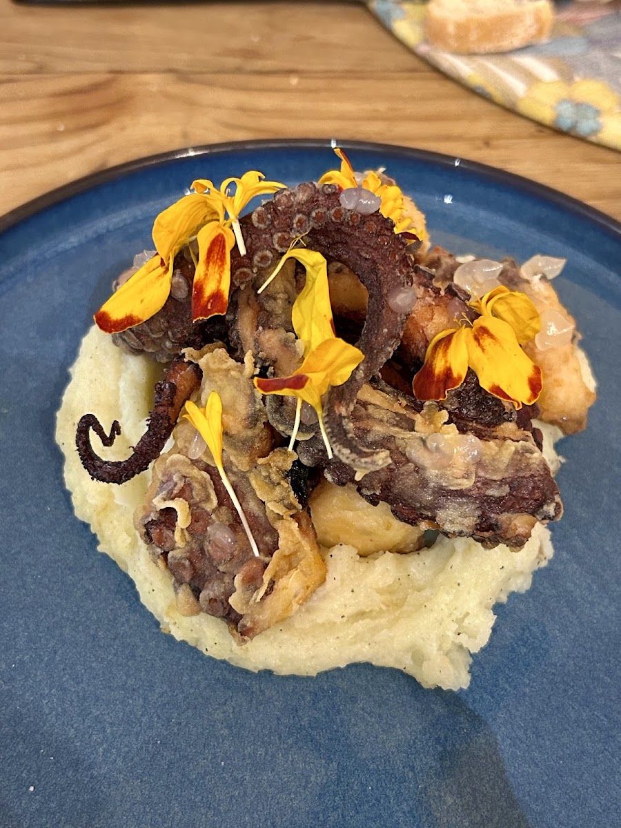 Completely different to any other restaurant in Corralejo ! The starters were amazing, I had squid which melted in your mouth with a mixture of delicate flavours. Beef carpaccio was a taste explosion ! We all had different pasta dishes which were uber delicious, not too much, not too little. A gastronomic pleasure amongst too any similar restaurants. Throughly recommend !